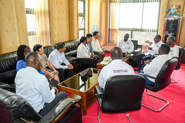 The Faculty of Agriculture had the honour of hosting a delegation from Afri-China/Sajorec CAS. The distinguished guests were warmly received by the University Management, led by the Vice-Chancellor, Prof. Henry Mutembei. The delegation included Mr. Zheng Miaoguo, President of Afri-China International Company (K) Ltd; Ms. Zhang Lina and Ms. Miriam Wanjiku, both of Afri-China International Company (K) Ltd; Mr. YU Haifeng, Program Coordinator of Sajorec CAS; and Mr. ZHOU Youqiang, a Grape Expert from Sajorec CAS.
