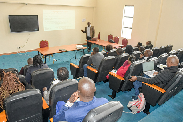 During the morning opening session, participants were introduced to Chuka University’s involvement in the 1890 Centers of Excellence for Global Food Security and Defence (CEGFSD). Presentations provided an overview of Kenya’s agricultural sector, highlighting national priorities, policy landscapes, and technological advancements. Experts shared insights on Kenya’s best practices in climate-smart agriculture, value chain development, and farmer-led innovation, while also drawing connections with global agricultural approaches.
